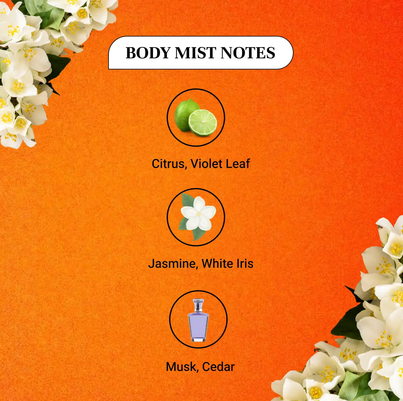 Refreshing citrus top notes combine beautifully with a floral heart of jasmine and white iris, seamlessly transitioning into warm musk and cedar. This balanced fragrance is perfect for everything from daytime errands to evening outings.